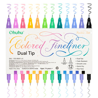 Ohuhu Colored Fineliner & Brush Pens, 12 Colors