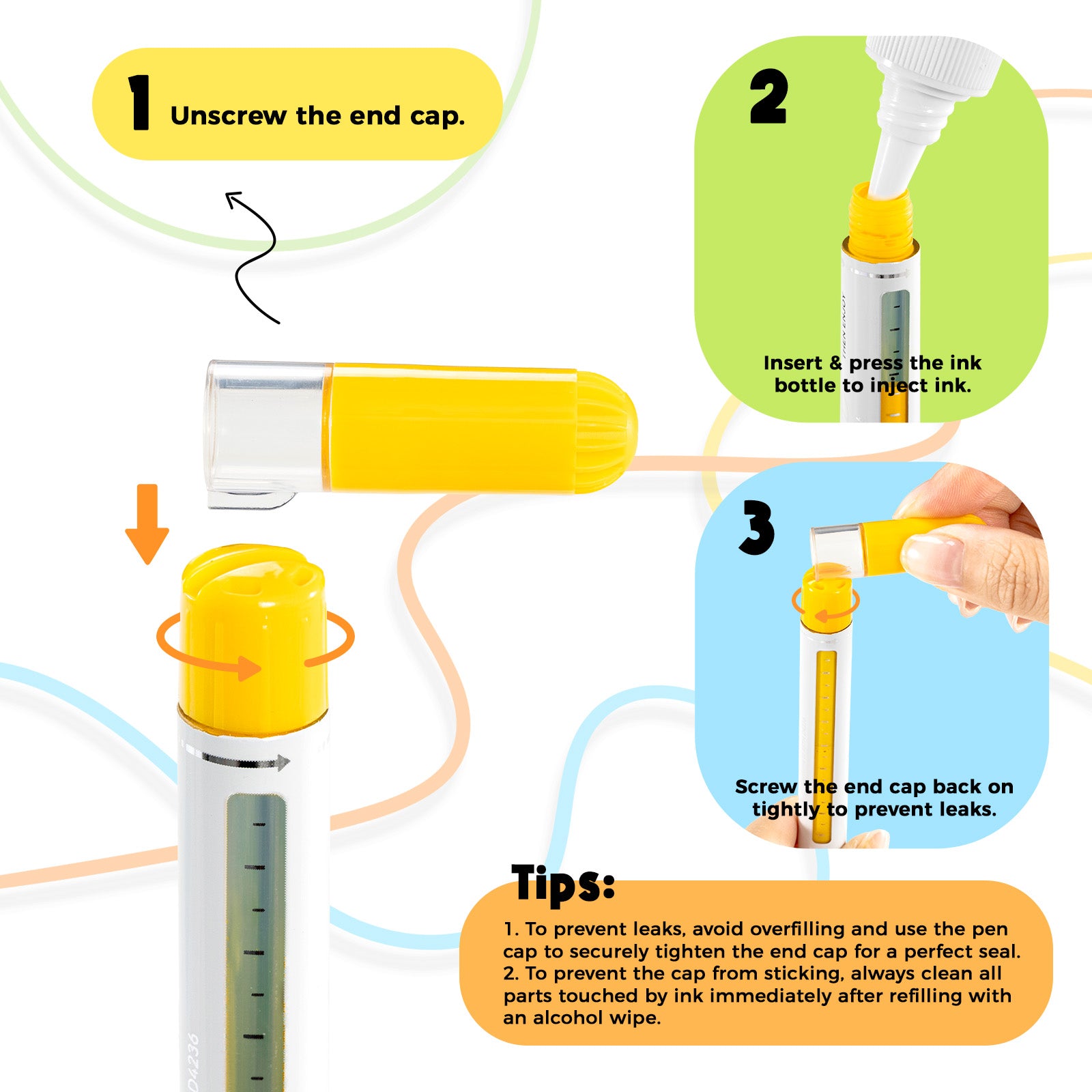 Stay in the flow. The clear ink window shows your ink level at a glance, helping you avoid running out mid-project. Refill anytime with matching 60 ml ink bottles (sold separately). One bottle refills up to 10 markers to help keep colors consistent across multiple pieces and series.