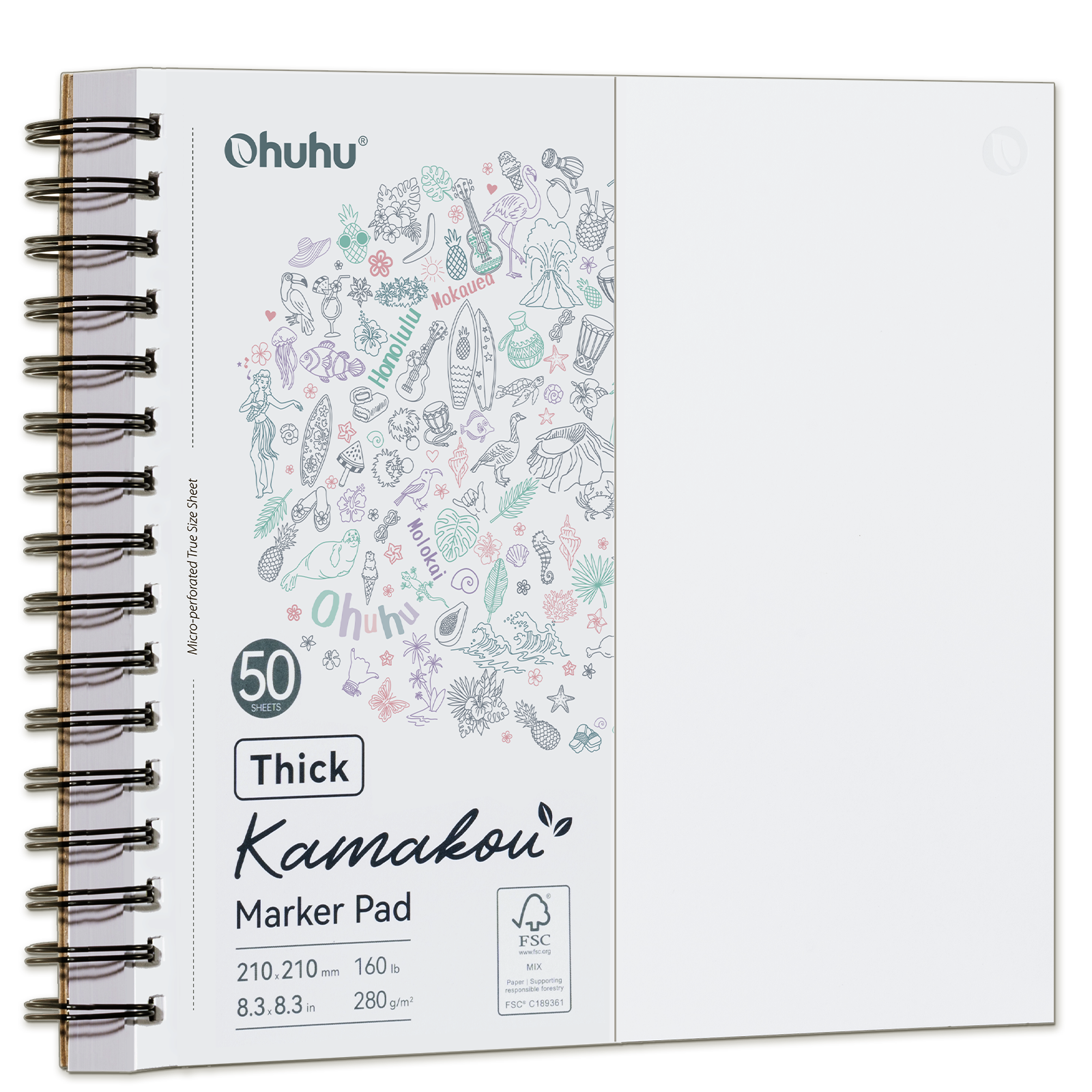 Ohuhu Heavyweight Bleedproof Double-Sided Marker Pad, Spiral-Bound - Kamakou