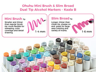Ohuhu Kaala B Dual Tips Alcohol Art Markers, Slim Broad & Mini Brush