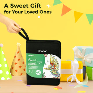 Ohuhu Pupe B 40 Paper-friendly (No Peeling) Markers& Coloring Book Set