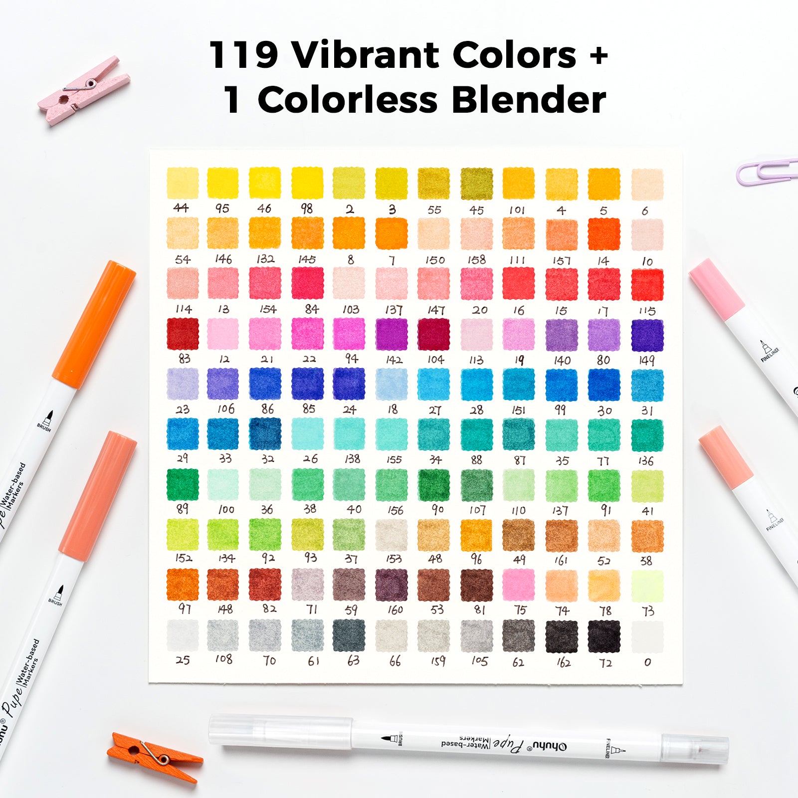 Unlock your creativity with 119 bright, rich colors plus a colorless blender. Each pen is numbered for easy selection, and a DIY color swatch card is included to organize and customize your palette.