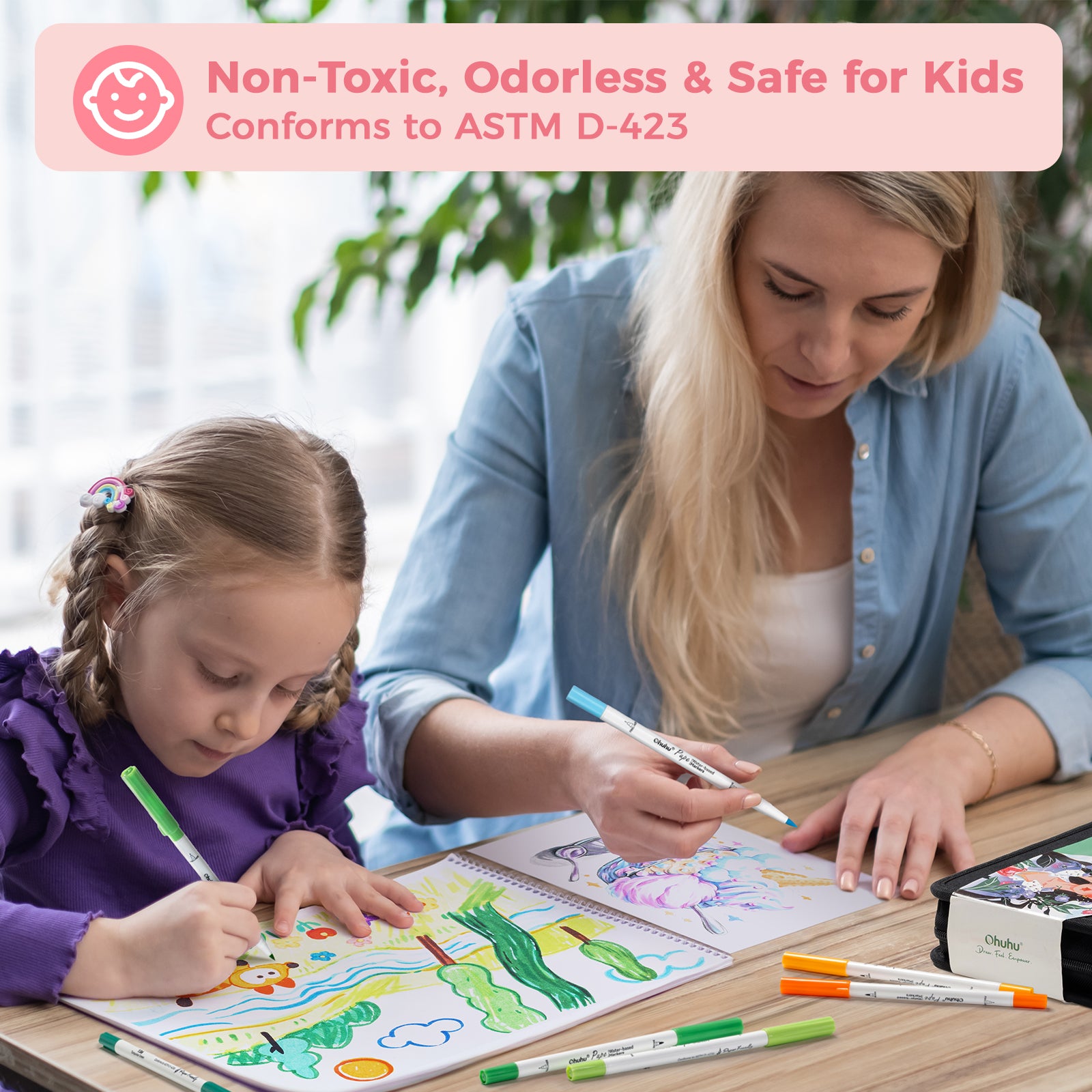Ohuhu Pupe Paper-friendly (No Peeling) Brush and Fineliner Dual Tips 120 Colors Water-based Coloring Markers