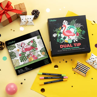 Ohuhu Water-Based Brush & Fine Tip Art Markers with Bleed-Proof Coloring Book are a must-have for your next masterpiece. The 0.5-1.5mm fine tip delivers smooth, precise lines for intricate details, writing, and doodling, while the 1-4mm soft brush tip glides effortlessly for shading, coloring, and blending. Whether you're adding fine details, journaling, or exploring calligraphy, these dual-tip markers offer endless creative possibilities.