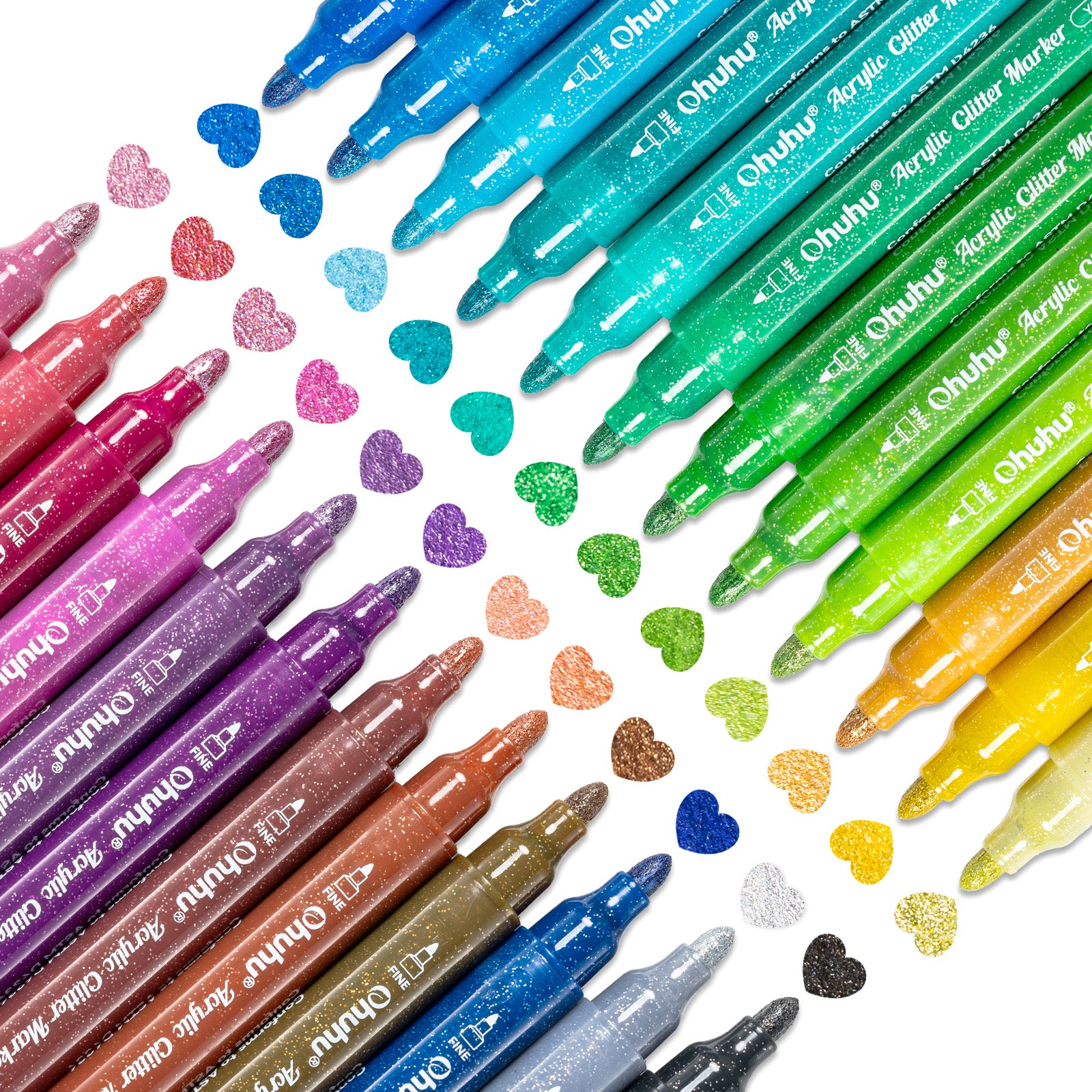 Ohuhu Acrylic Metallic Glitter Markers, 24 Colors - 0.7mm & 3mm Tip Paint Pens