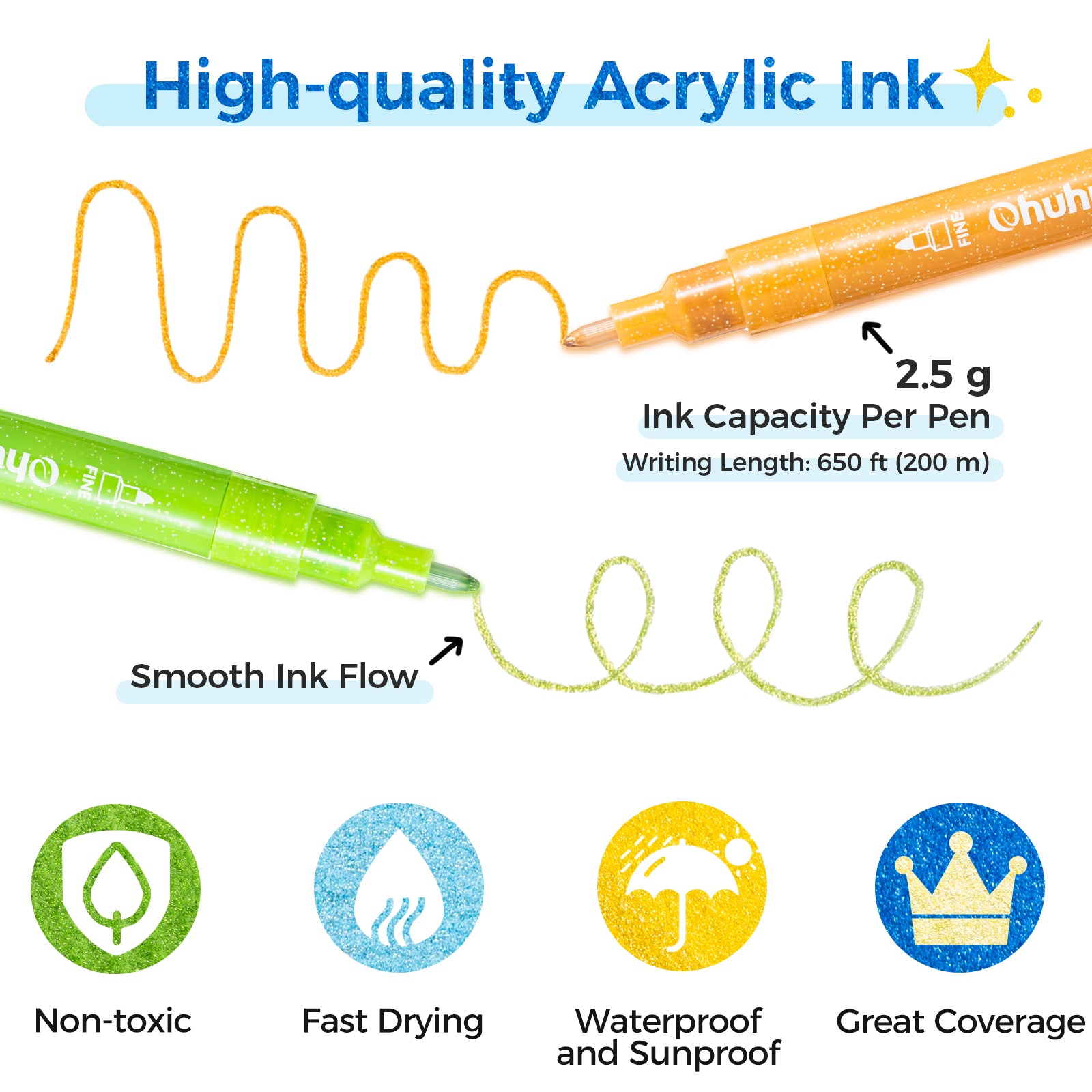 With rich, even coverage and a round tip that glides easily, every stroke feels natural. Ohuhu’s fast-drying, non-toxic ink keeps your process clean and simple, while your colors stay vibrant over time.